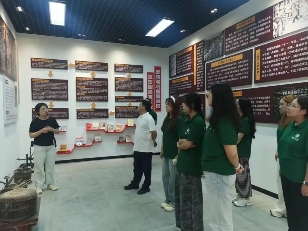 在柏树乡党委组织员王海燕的带领下,师生们参观了抗日民主政府旧址纪念馆、晋察冀边区商店旧址、九一三惨案遗址,聆听烽火岁月的感人故事,深刻感悟革命先辈们为民族独立和人民解放抛头颅、洒热血的坚定信念与无畏牺牲。岭南村所蕴藏的红色基因,如无声的号角,激励着青年医学生们铭记来时路,筑牢理想信念之基,将爱国情怀和奋斗精神内化于心,赓续共产党人的精神血脉。