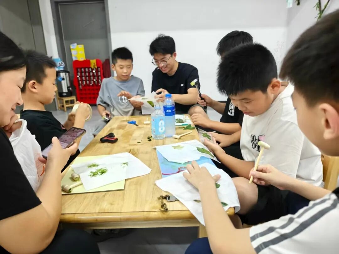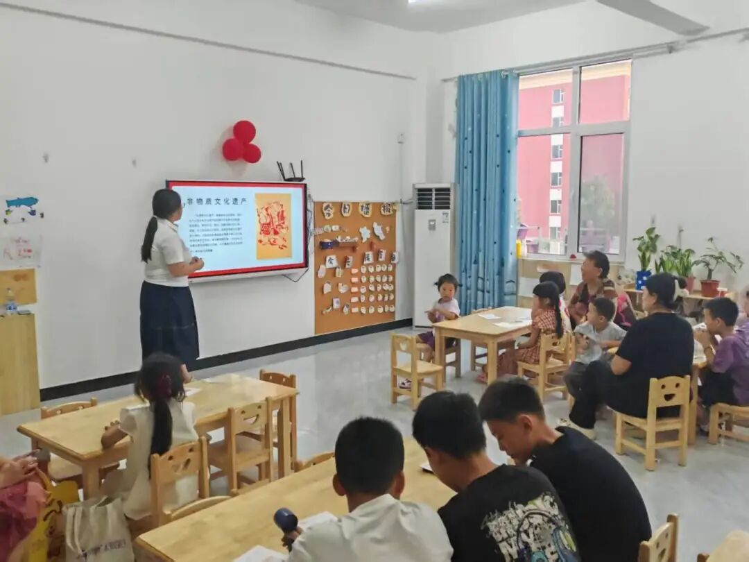 团队成员开展“续文化之脉·非遗文化体验”实践活动,通过剪纸、拓染等,带领孩子们走近非遗,感受中华优秀传统文化。