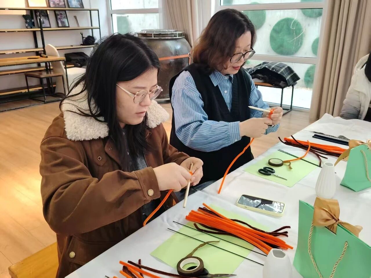 活动现场欢声笑语不断,老师们在动手实践中感受非遗技艺的独特魅力,也在交流互动中增进情谊。