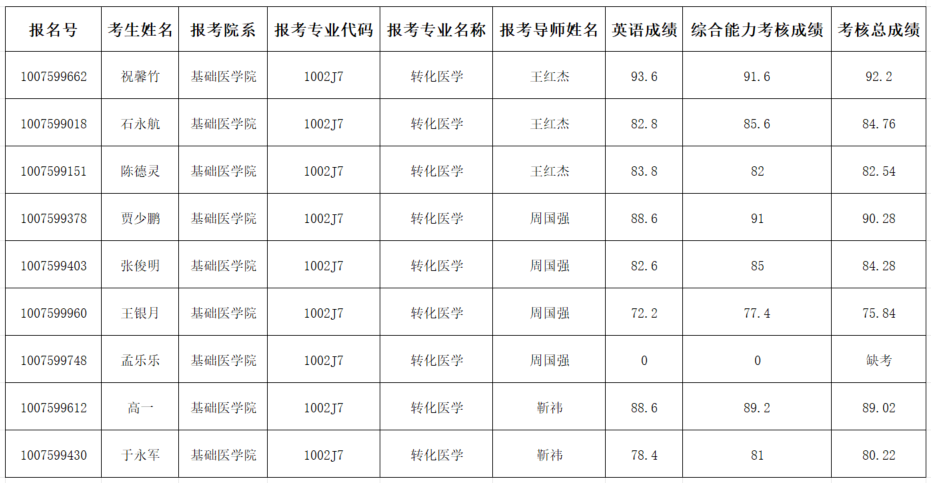 根据河北大学及河北大学基础医学院有关博士招生规定,我院于2026年4月20日进行了博士研究生考核工作。现对所有考生考核成绩予以公布。如对分数有异议,请考生本人在4月24日前致电0312-5078523,并提交书面申请。